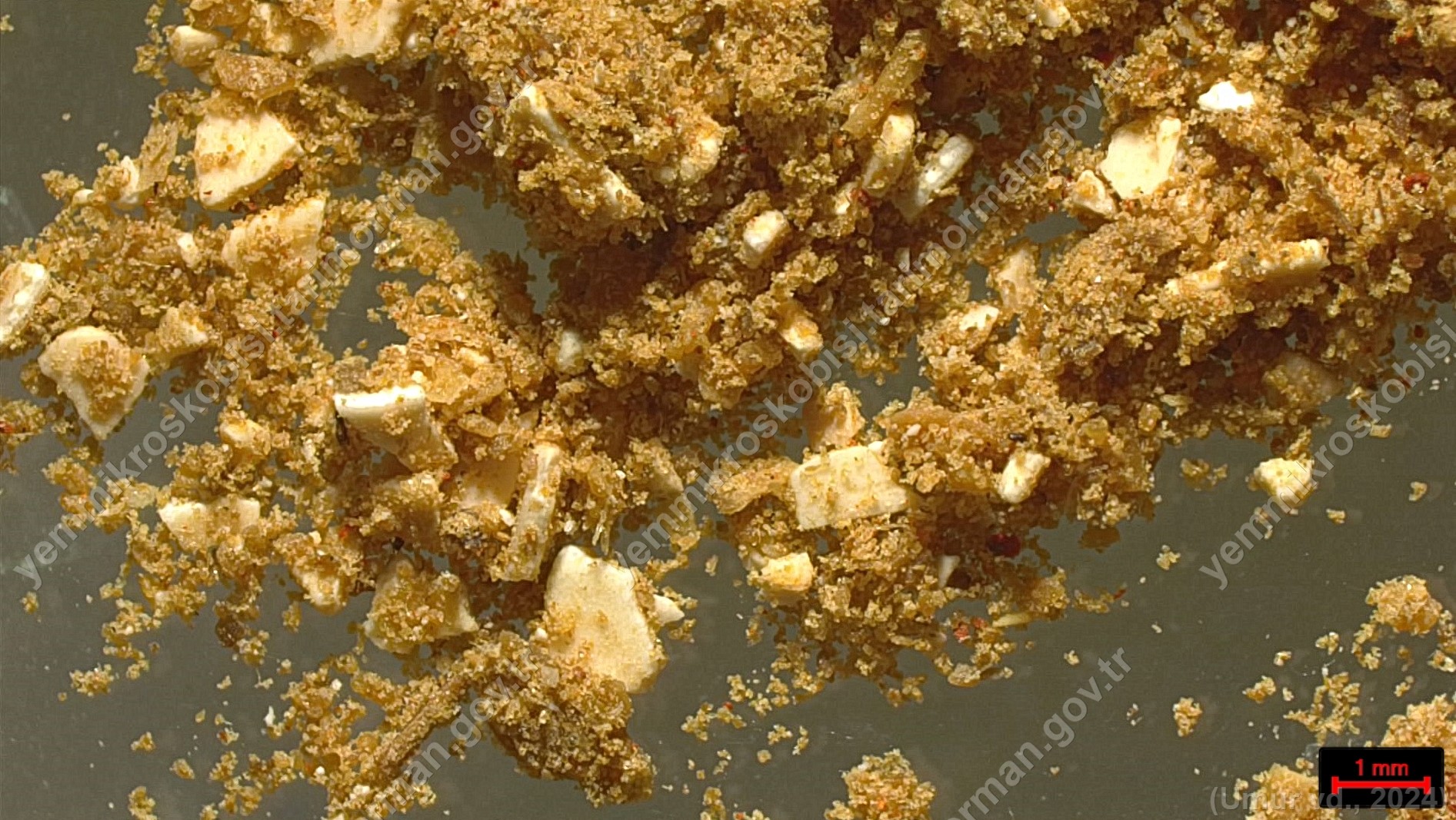 Balık unu | Pisces | Kılçık | Sediment <200µ | Işık | 100x | Alizarin Kırmızısı | ||