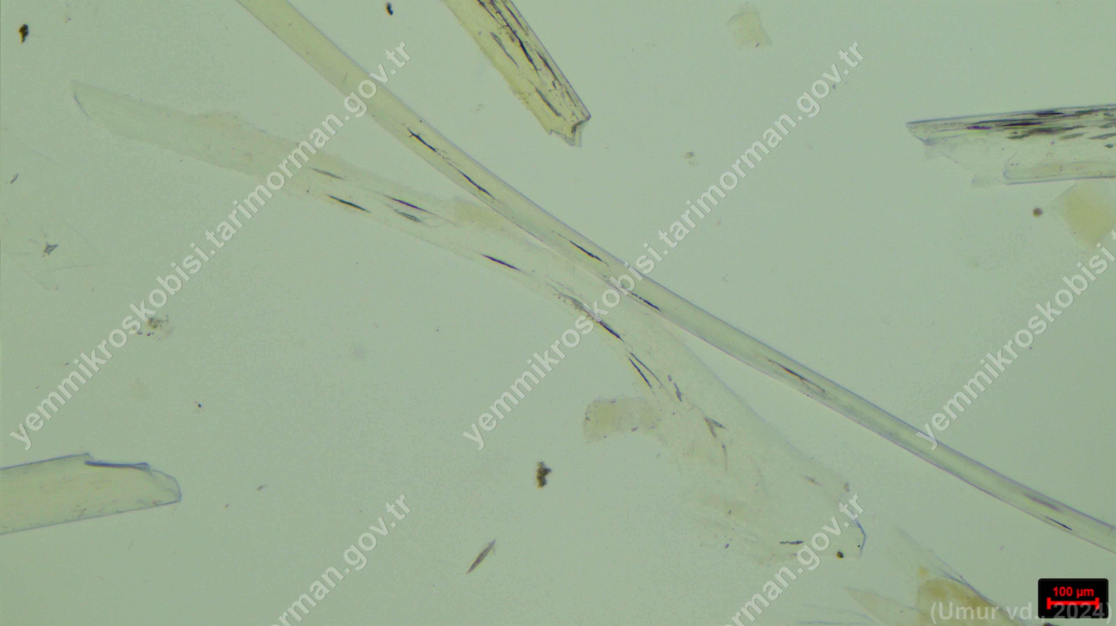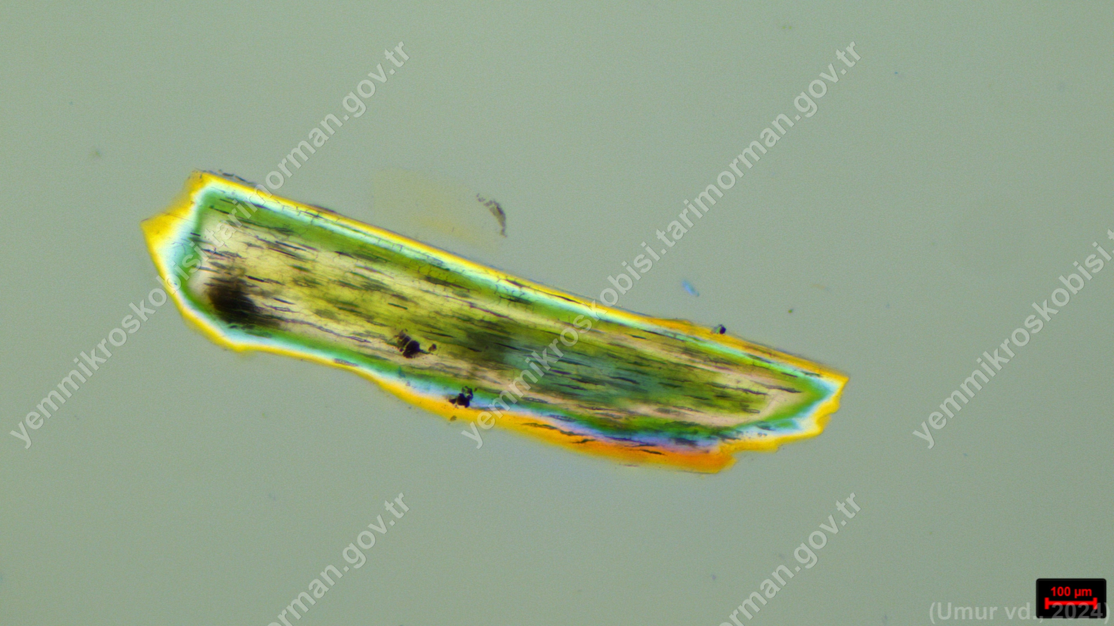 Karides Unu | Penaeus kerathurus | Kas Doku | Flotat <200µ | Polarize | 100x | Lye | ||