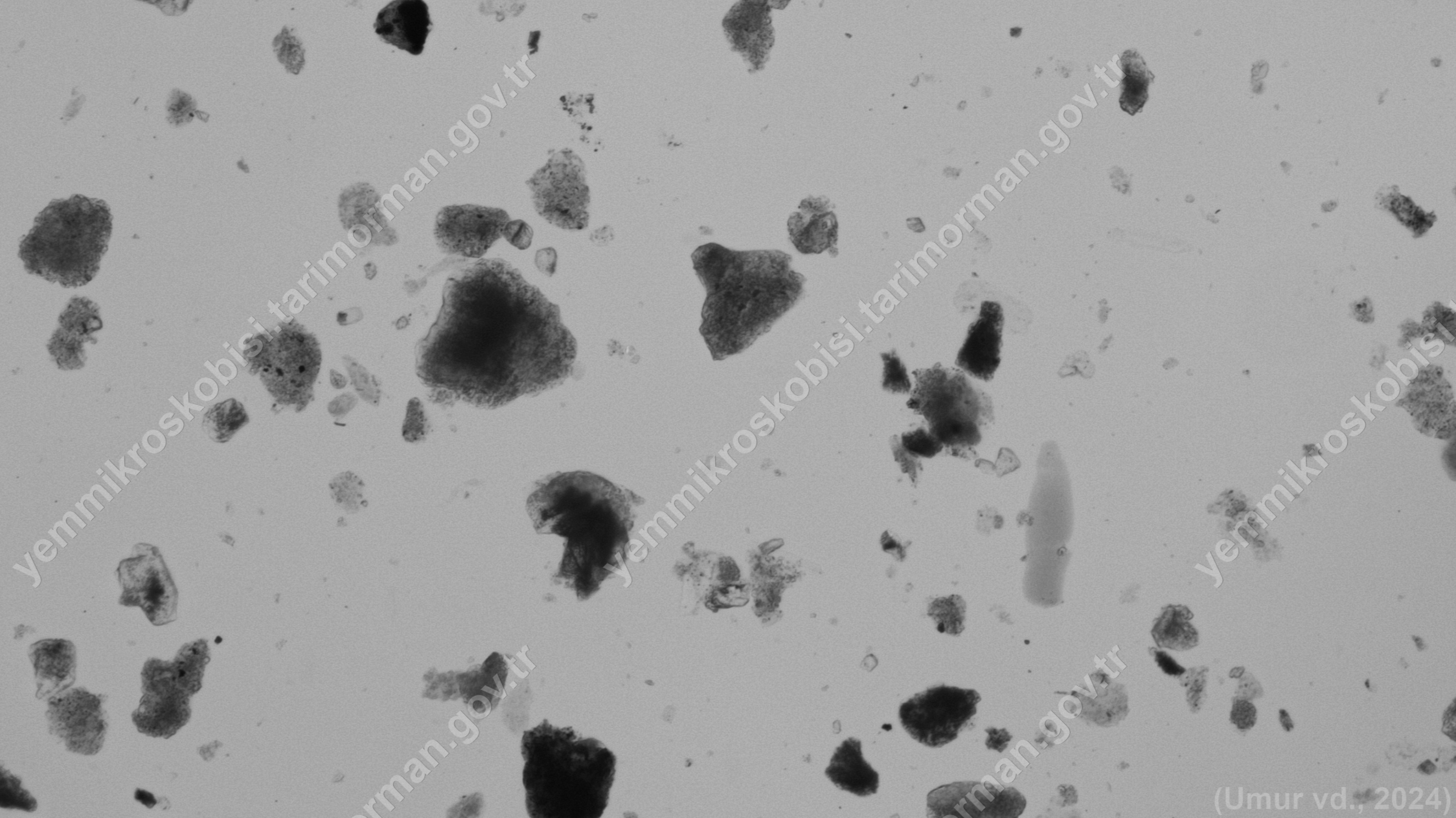 Yumurta Unu | Gallus gallus domesticus | Siyah-beyaz | Sediment <200µ | Işık | 100x | Fenol-Gliserin | ||