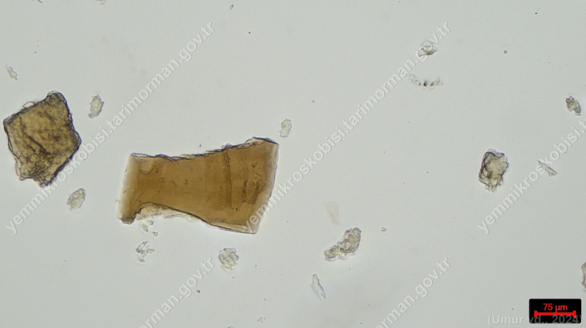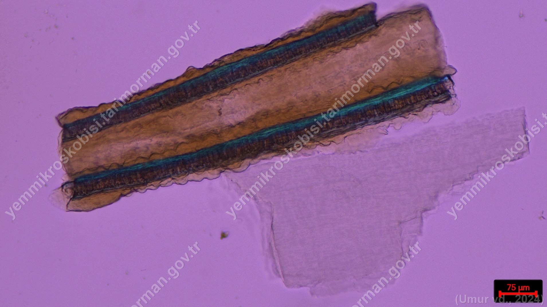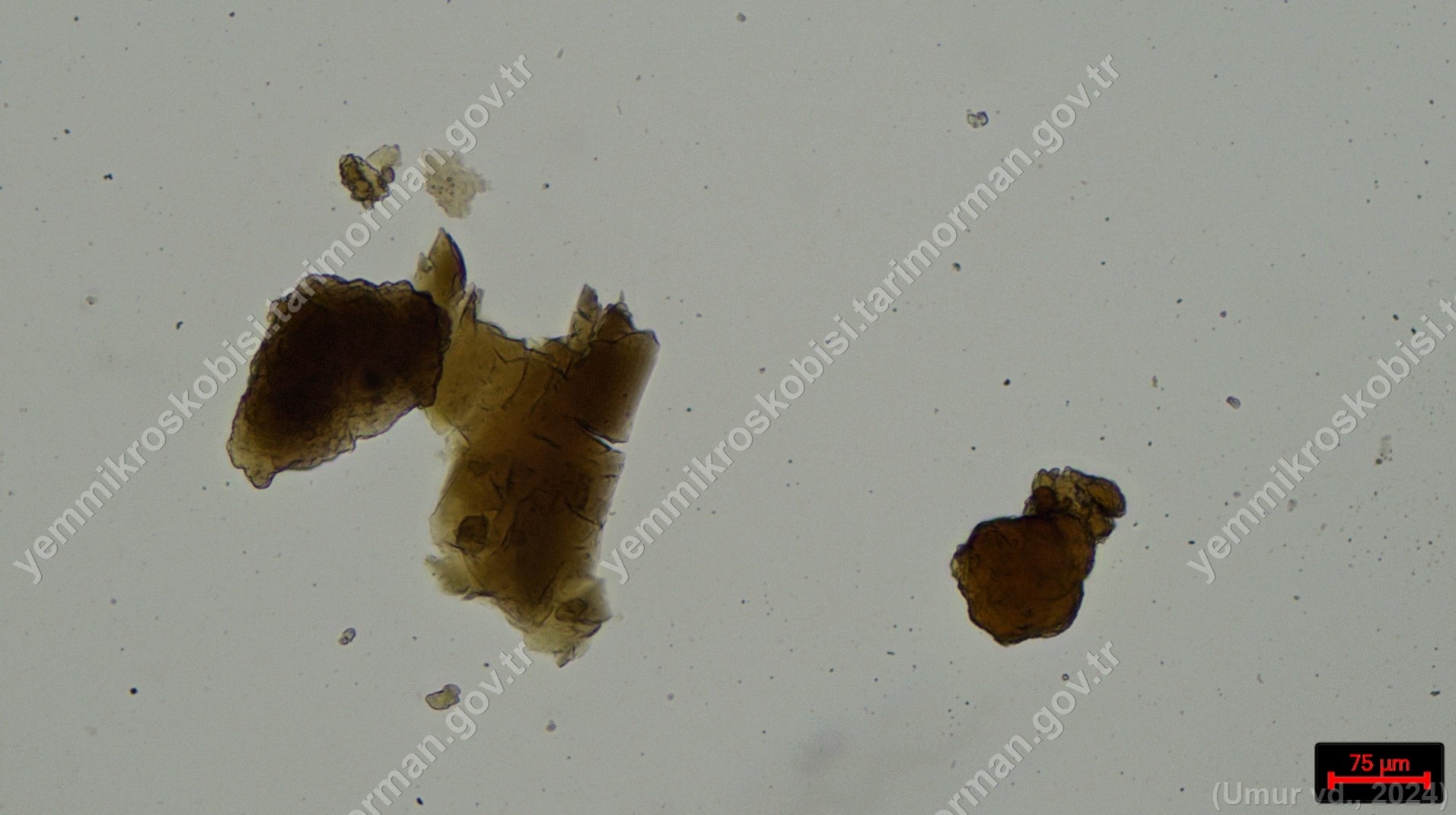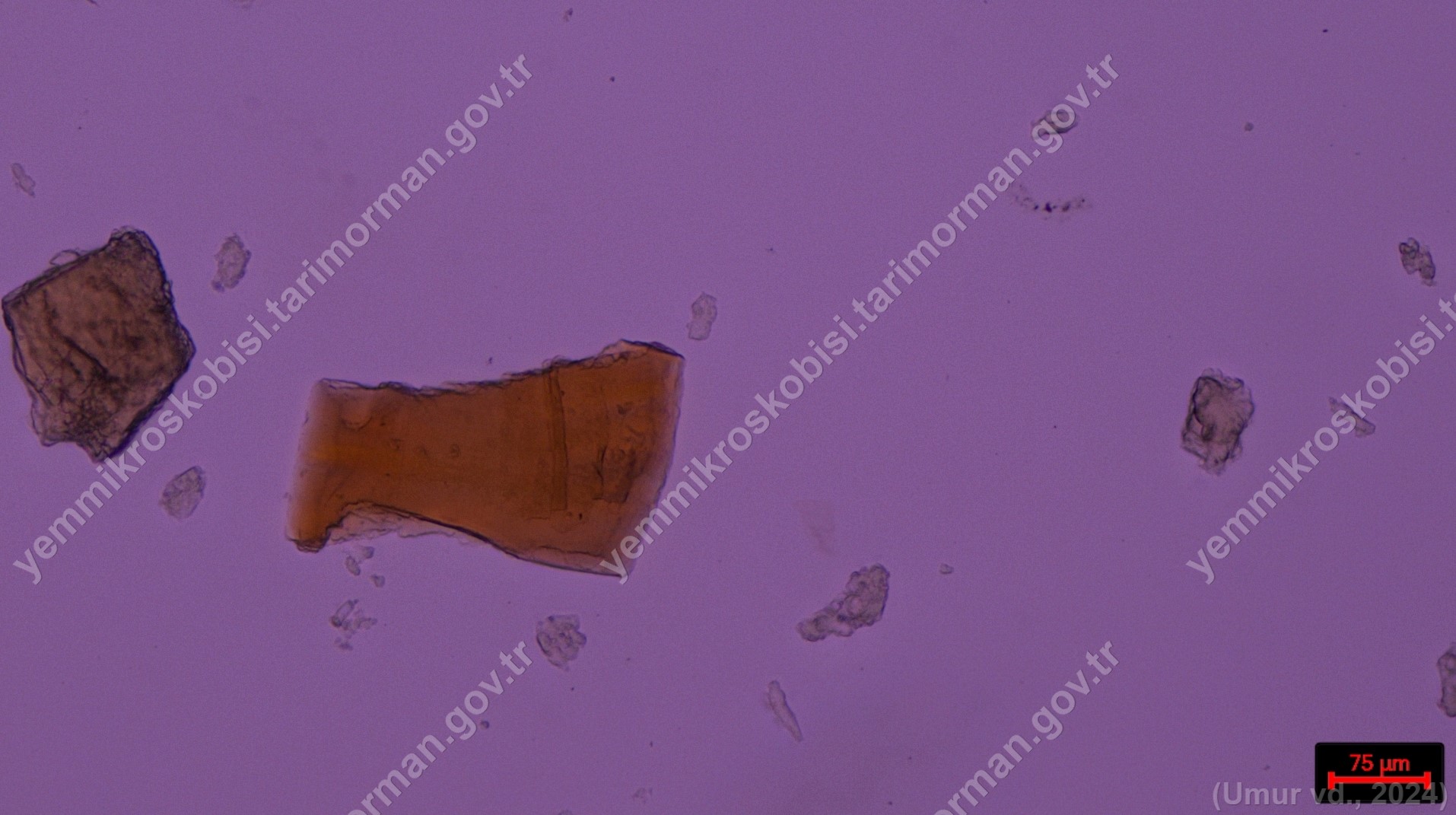 Hamsi Unu | Engraulis encrasicolus | Deri dokusu | Polarize ışık | Flotat <200µ | Işık | 100x | Lye | |