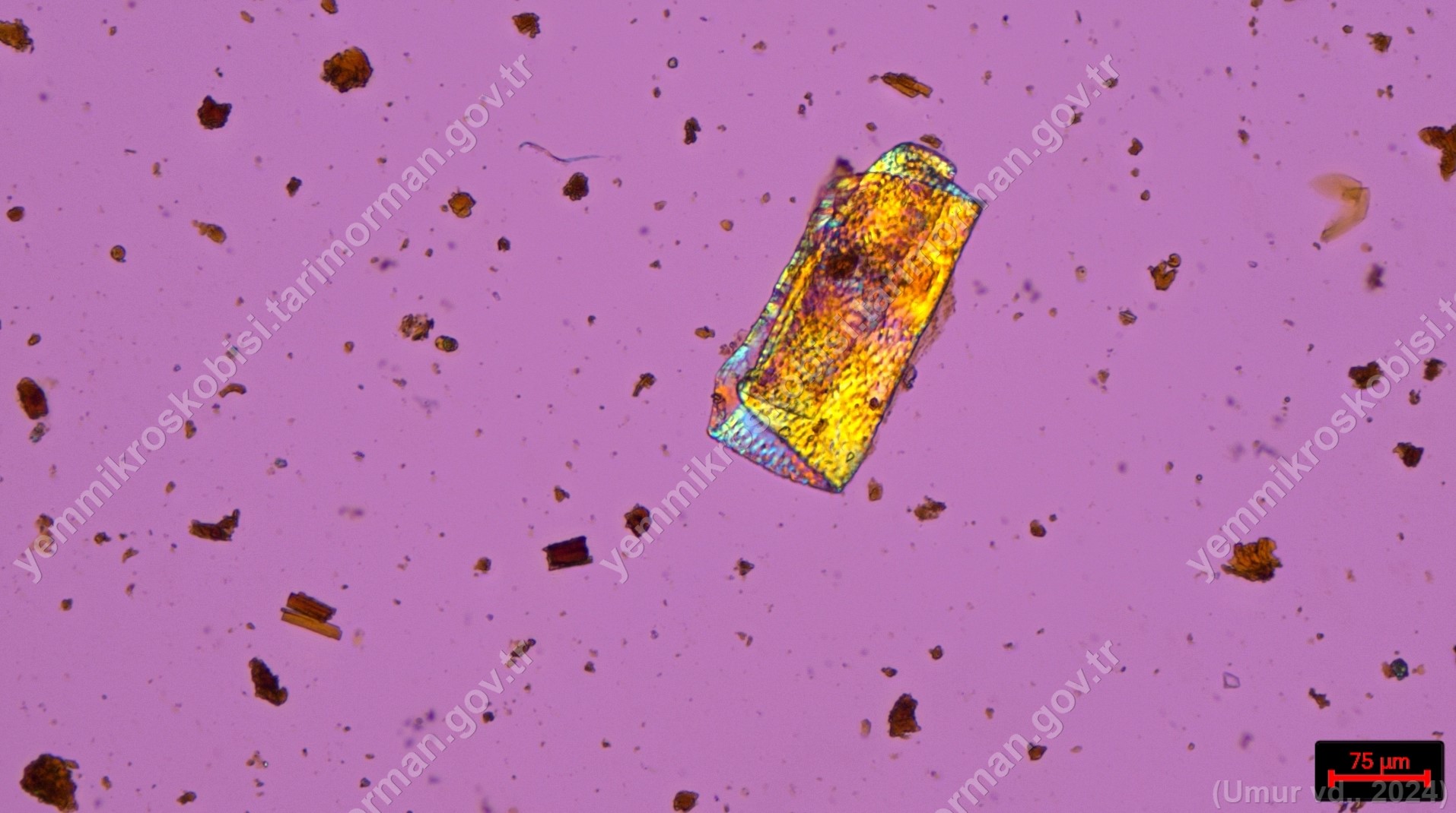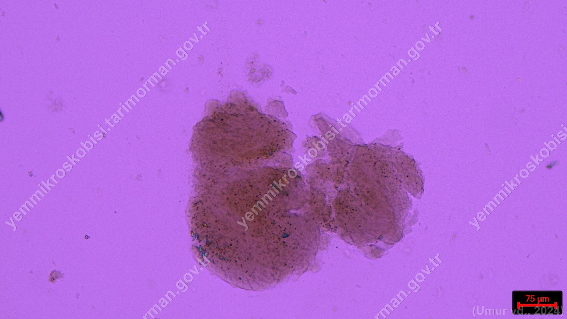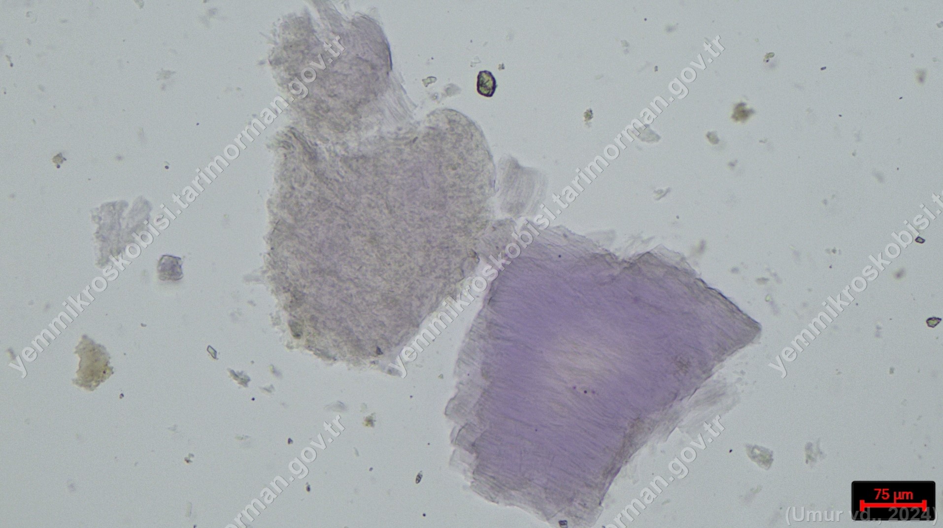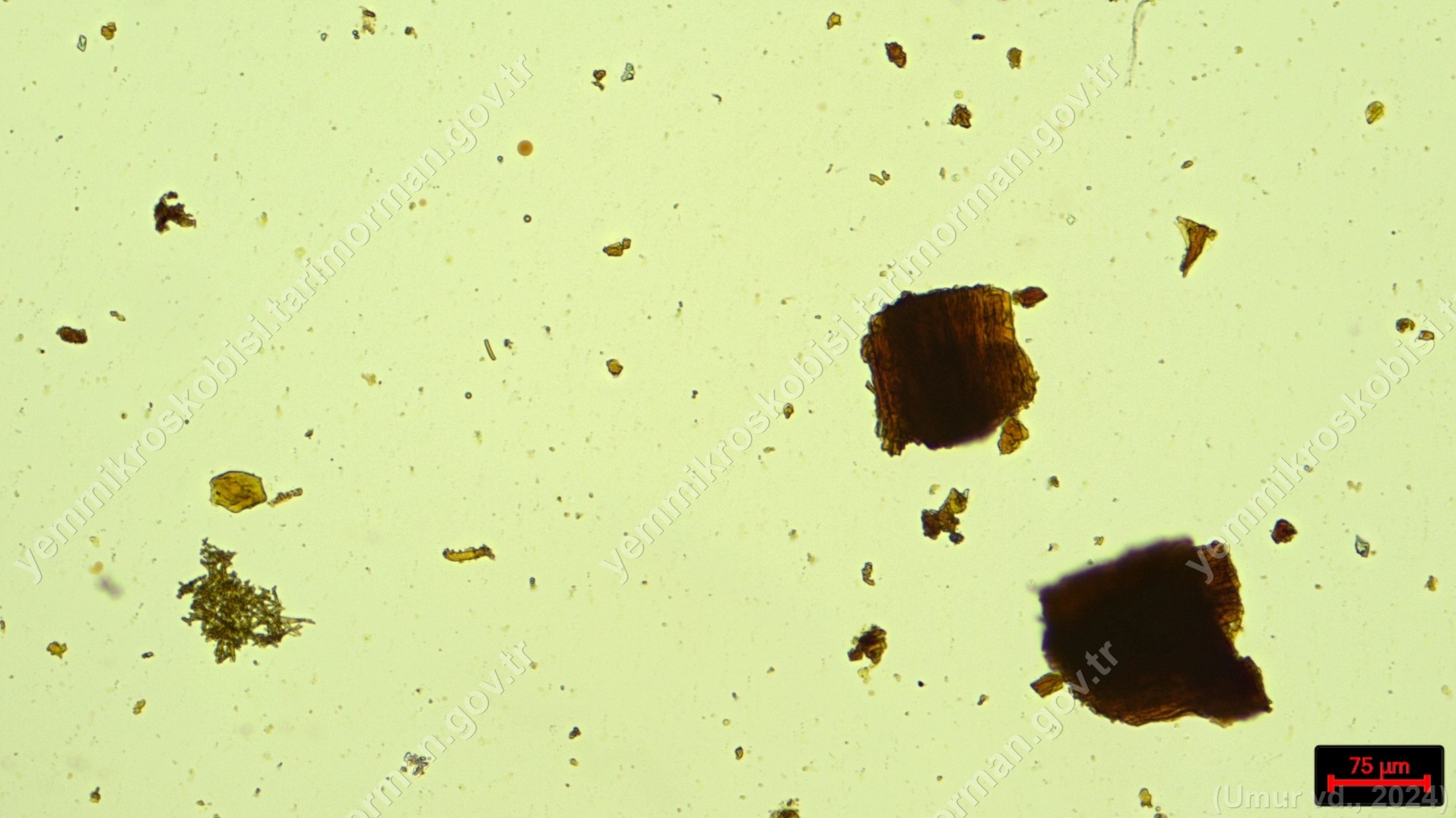 Sülünez Kurdu Unu | Polarize ışık | Flotat <200µ | Işık | 100x | Lugol | |||
