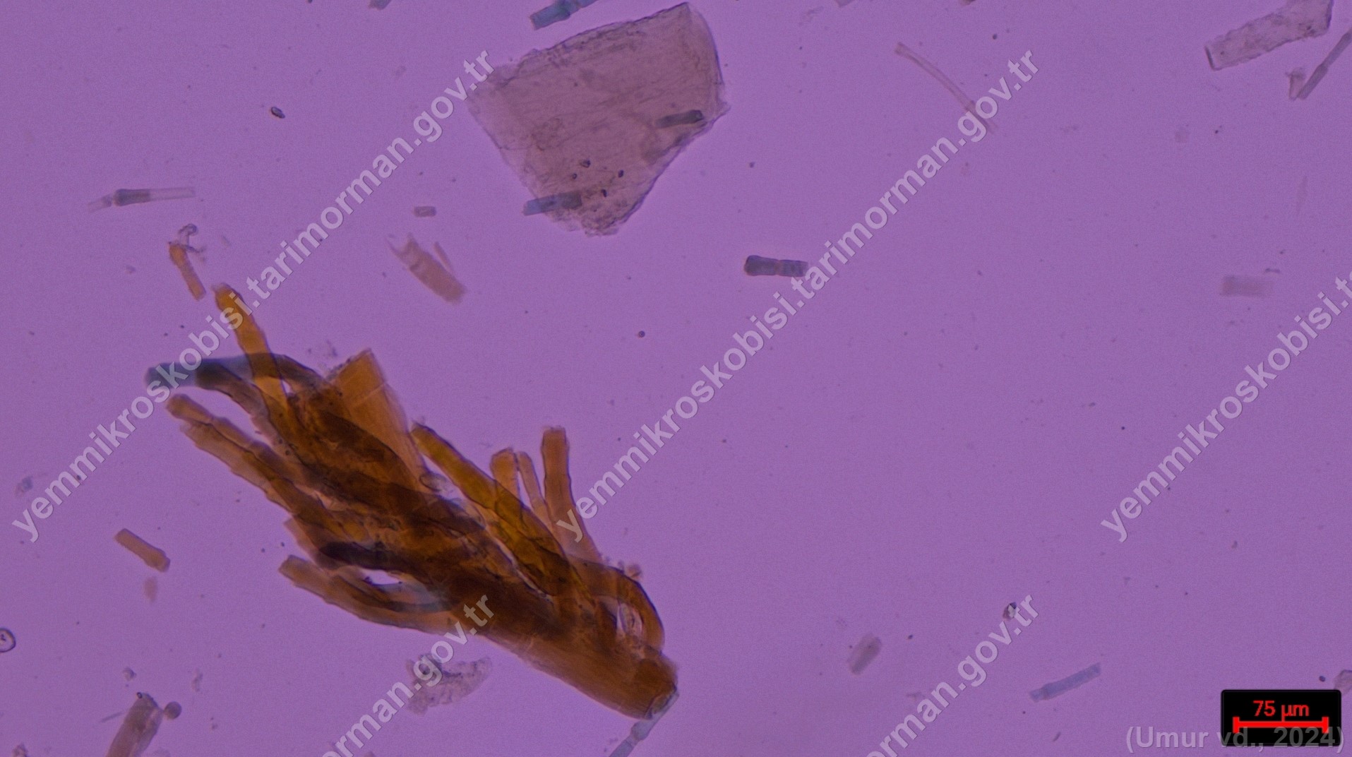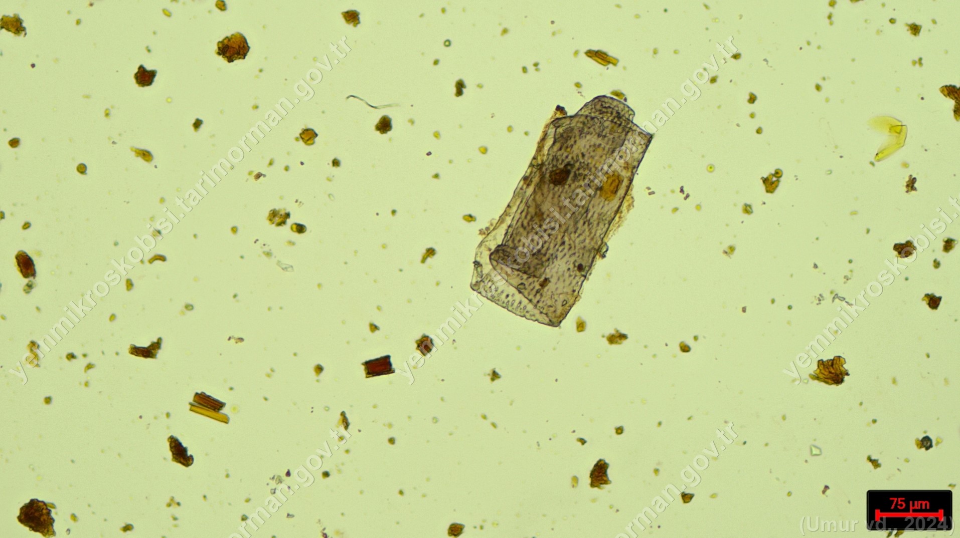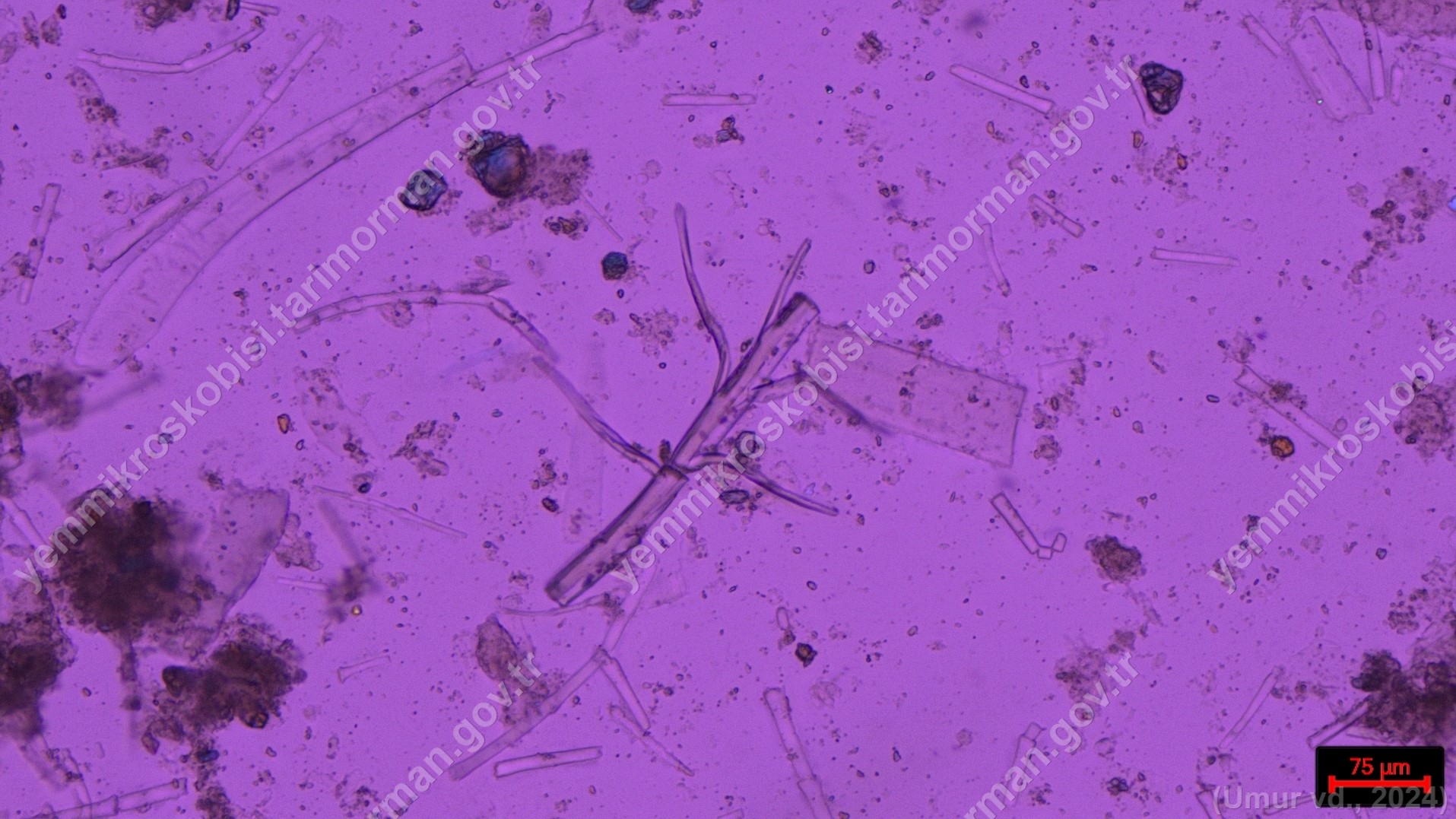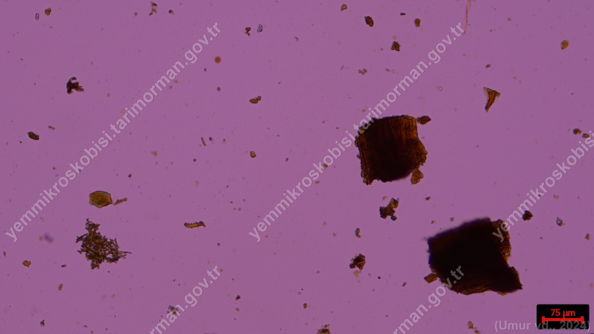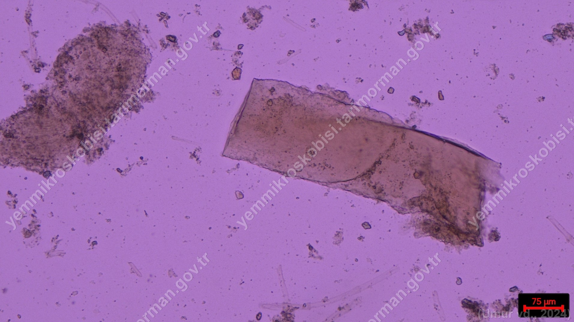 Sülünez Kurdu Unu | Polarize ışık | Flotat <200µ | Işık | 100x | Lugol | |||
