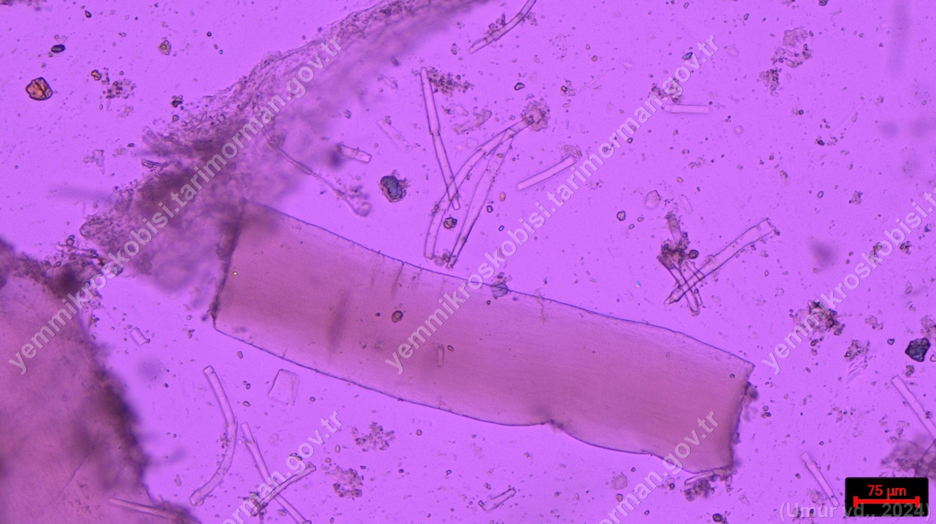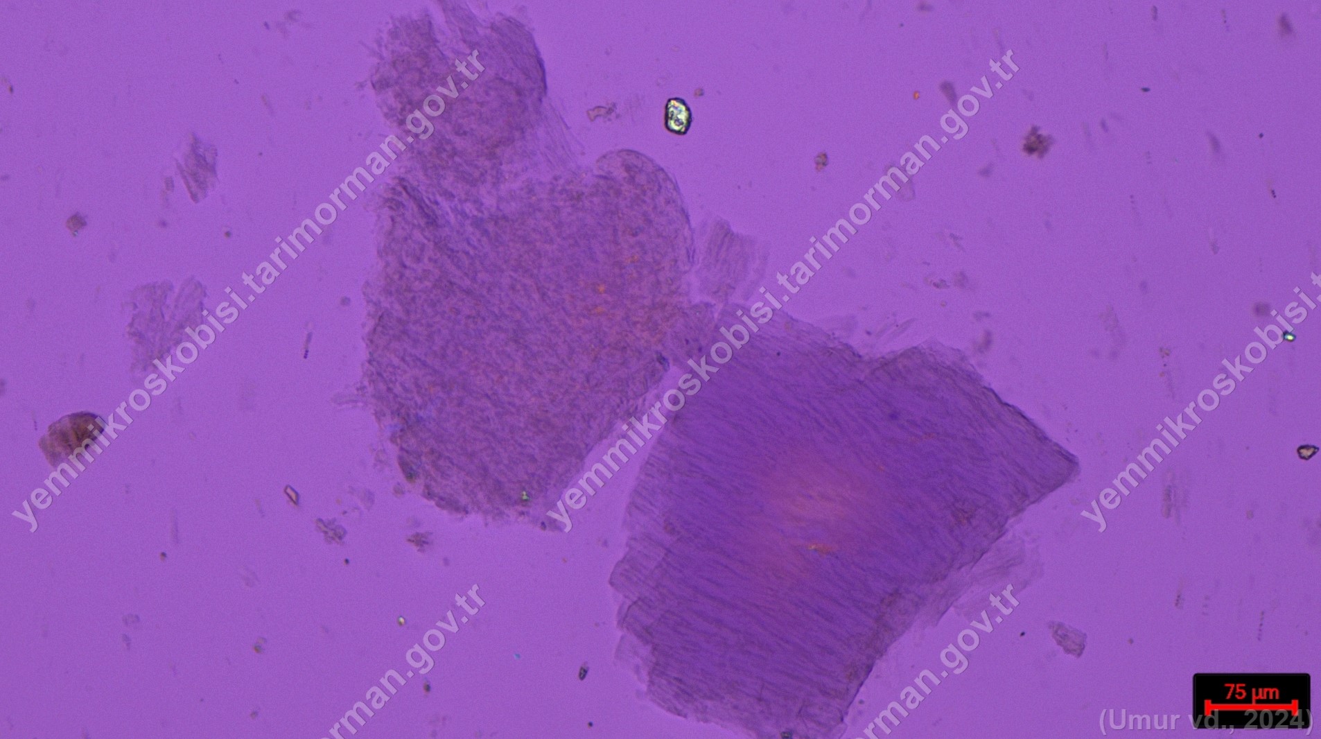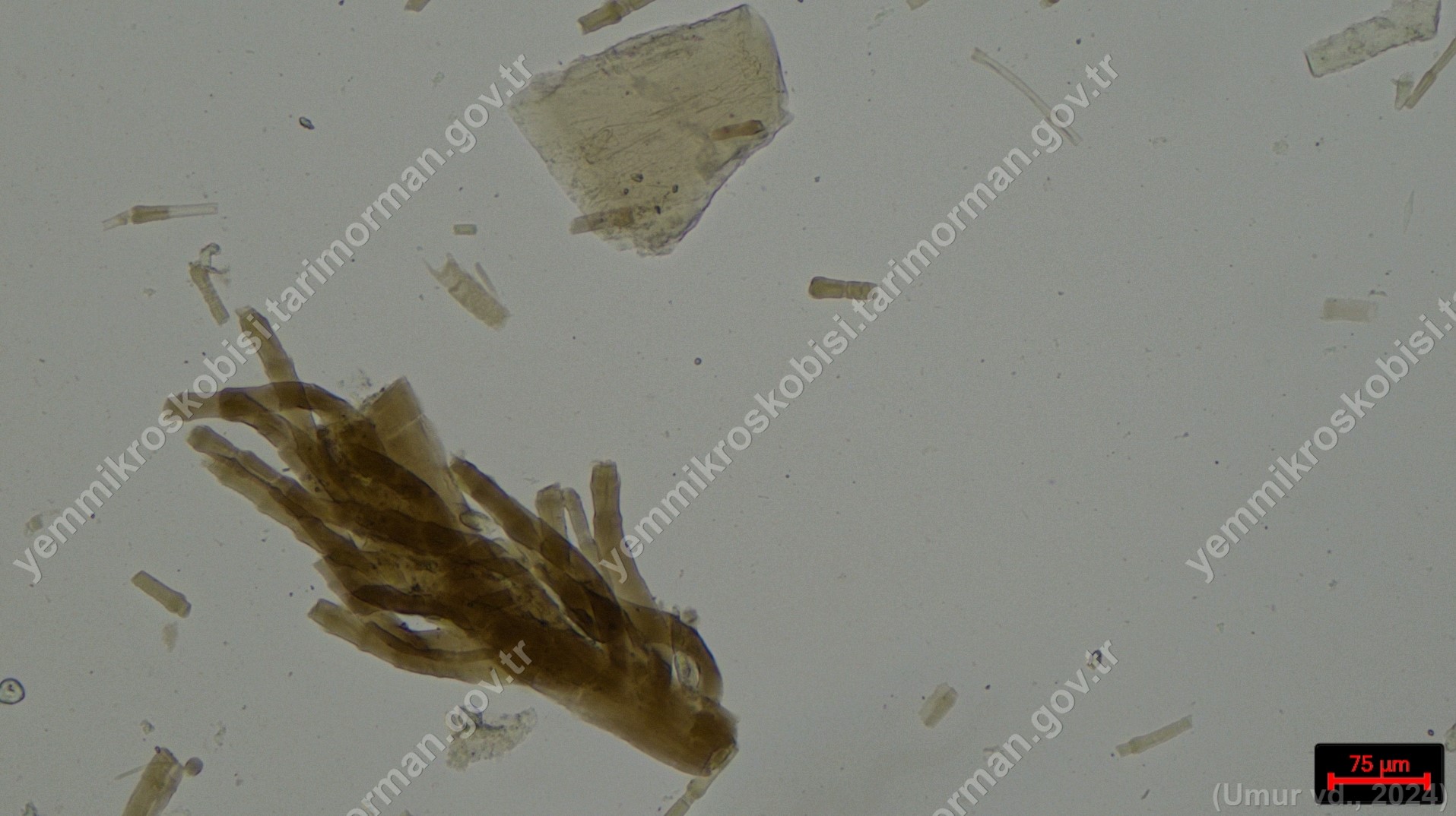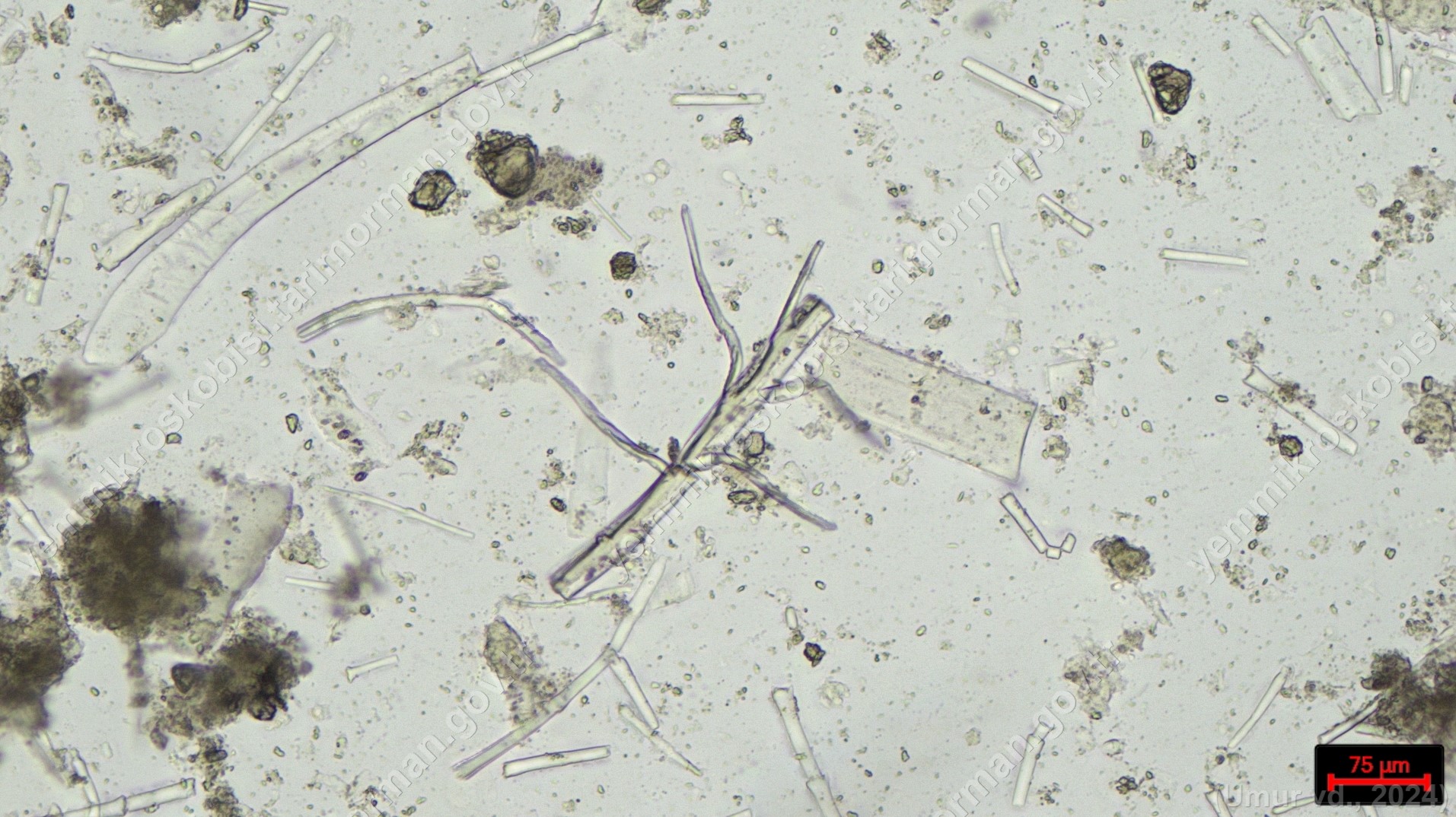 Sülünez Kurdu Unu | Polarize ışık | Flotat <200µ | Işık | 100x | Lugol | |||