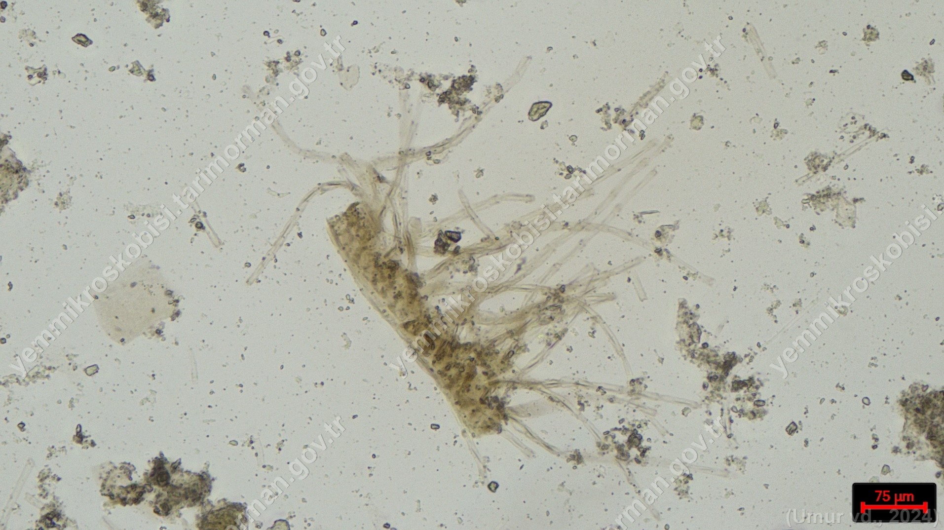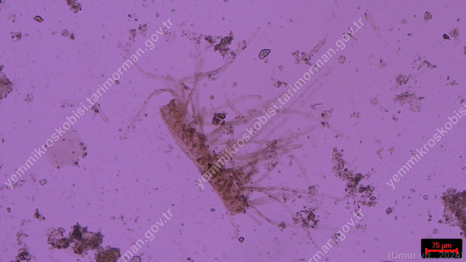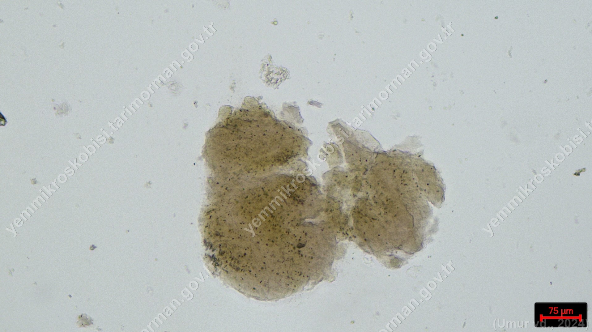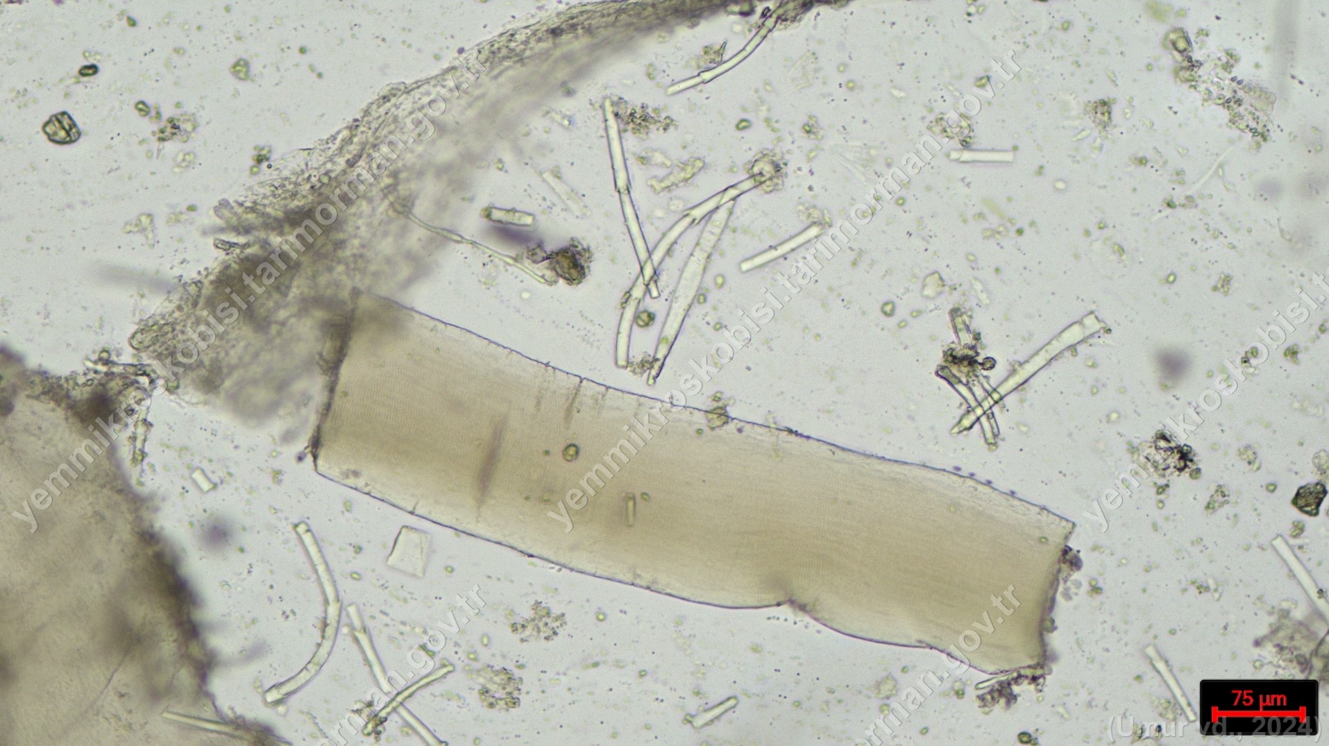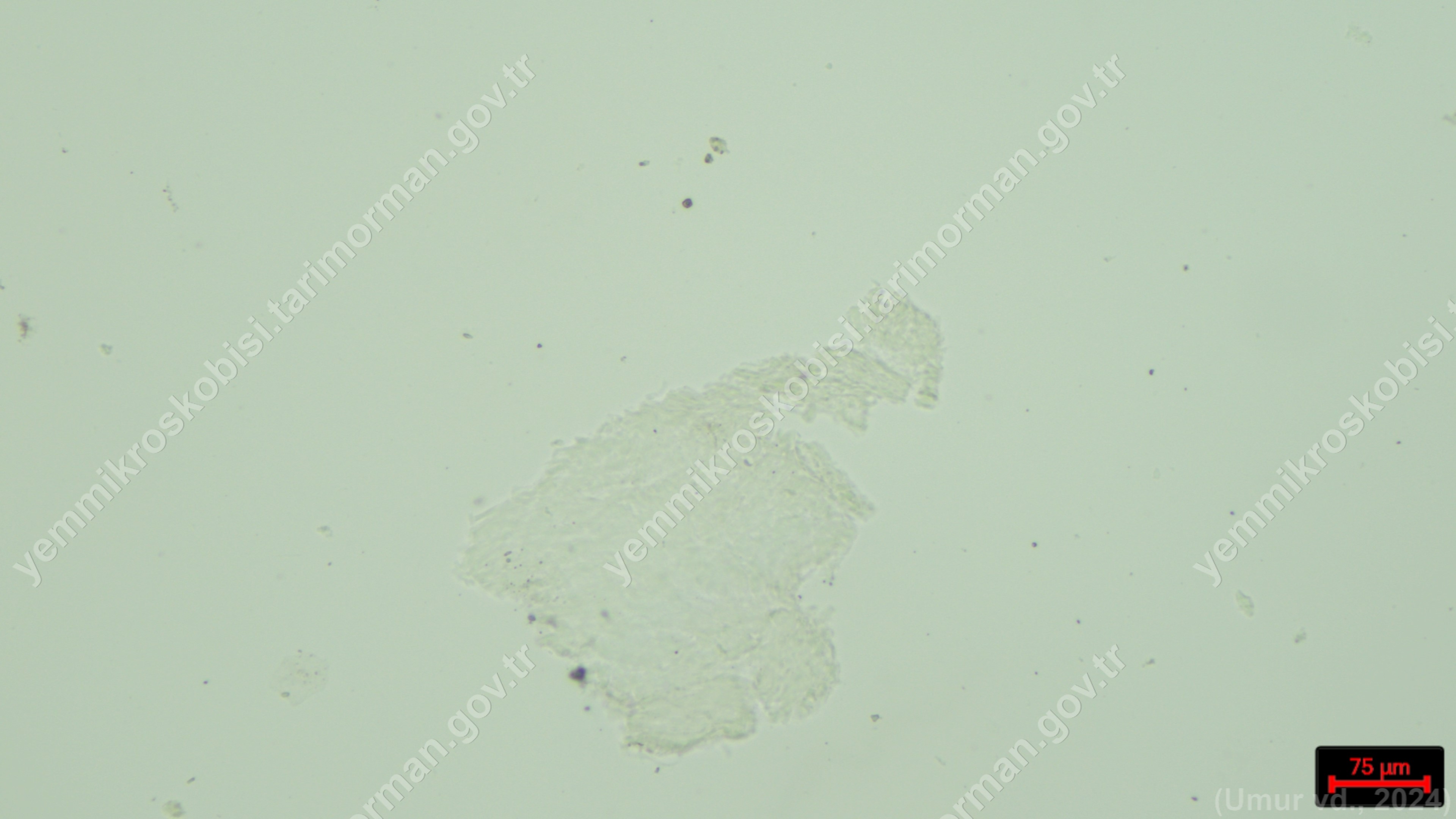 Sülünez Kurdu Unu | Polarize ışık | Flotat <200µ | Işık | 100x | Lugol | |||