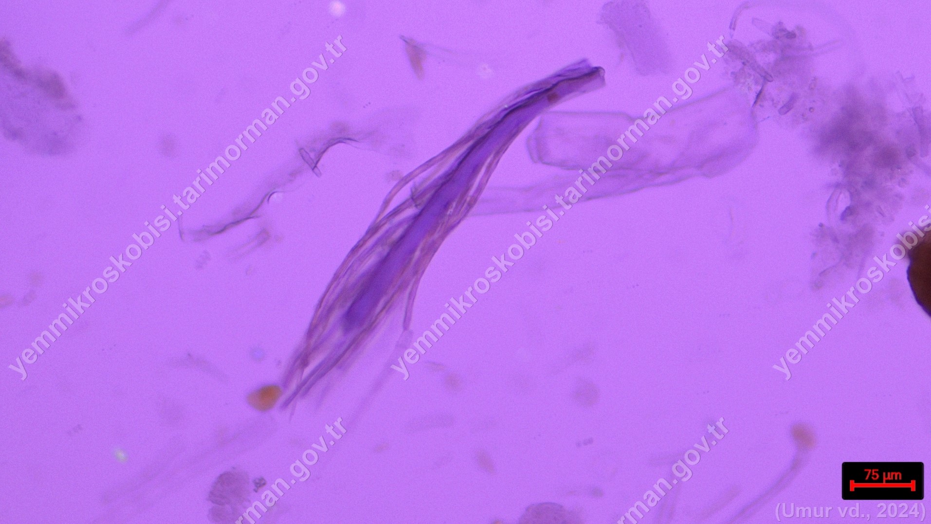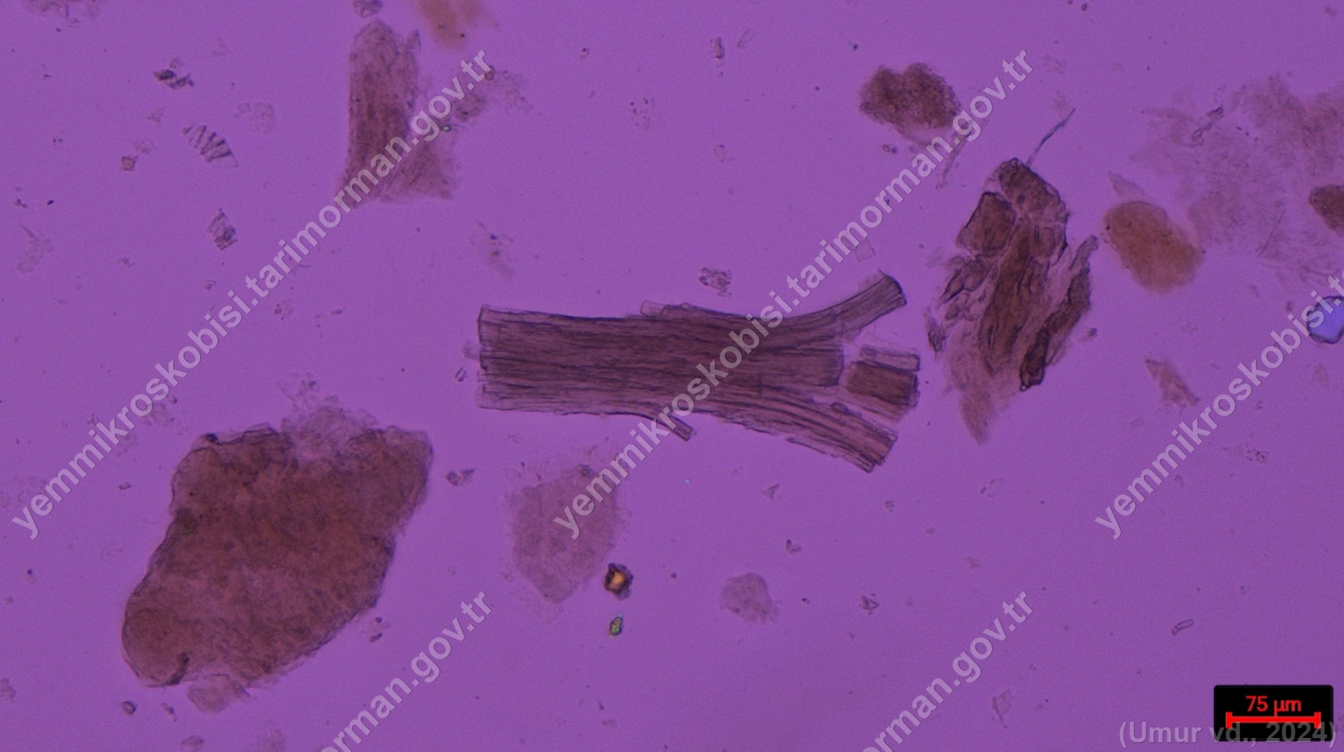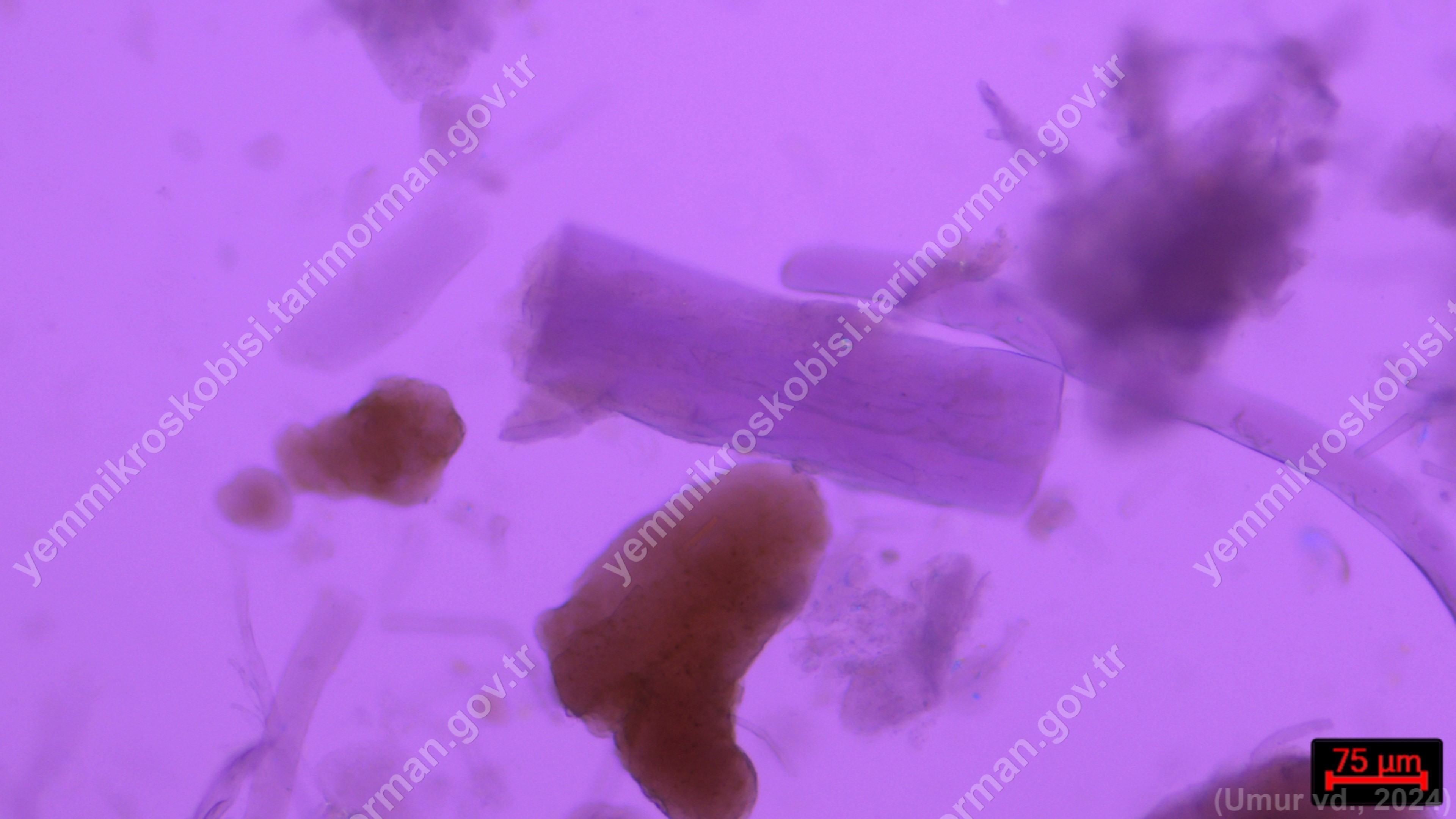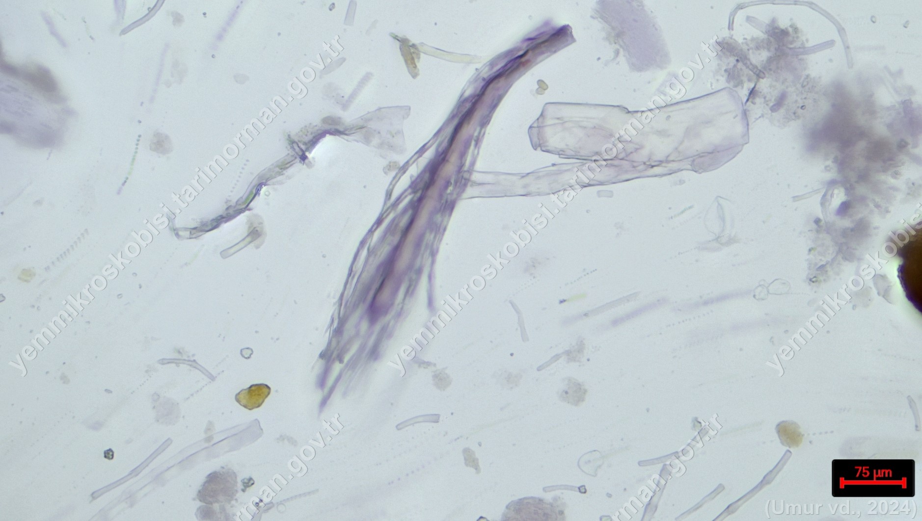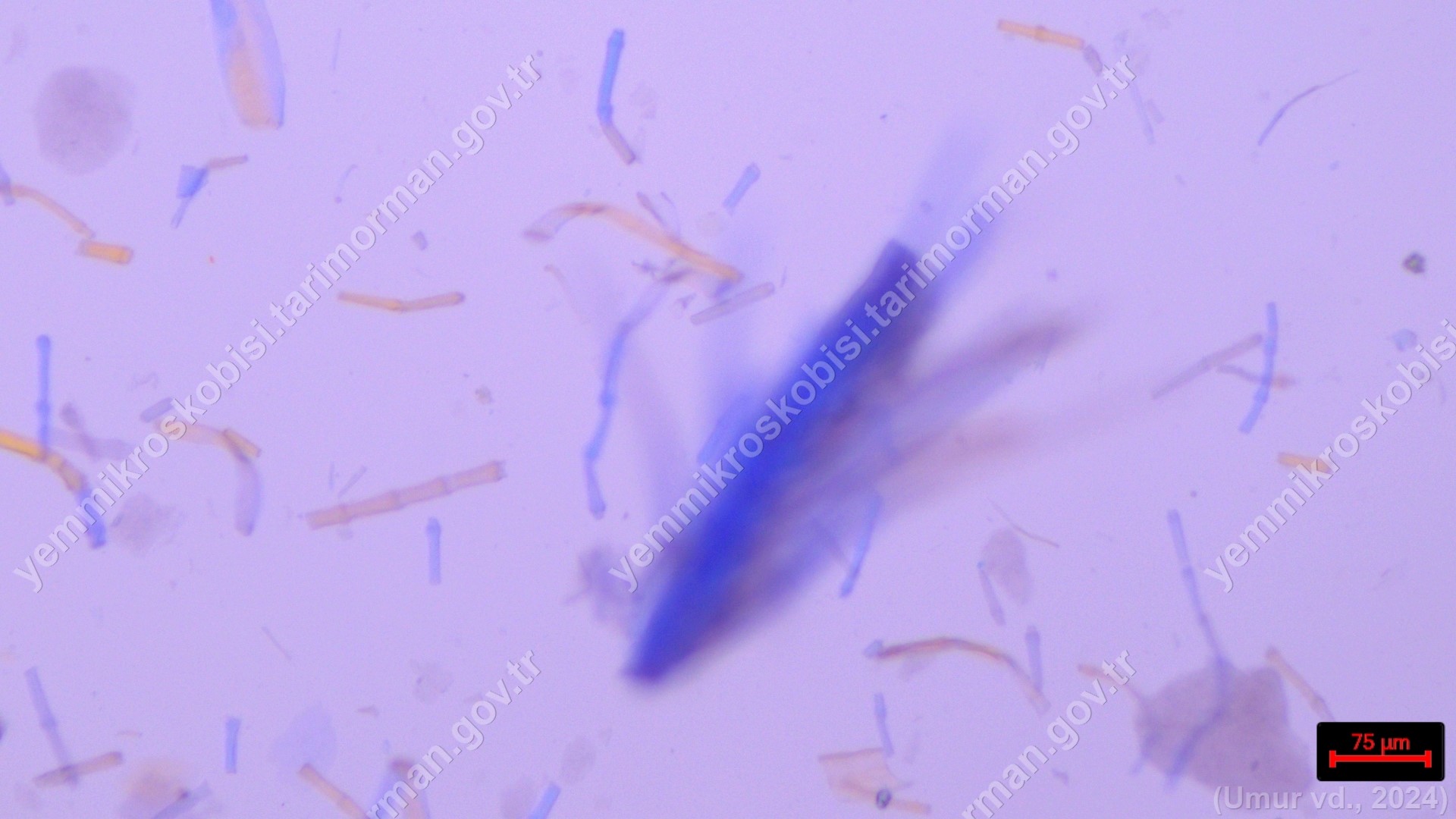 Piliç Unu | Gallus gallus domesticus | Tüy | Polarize ışık | Flotat <200µ | Işık | 100x | Fehling | |