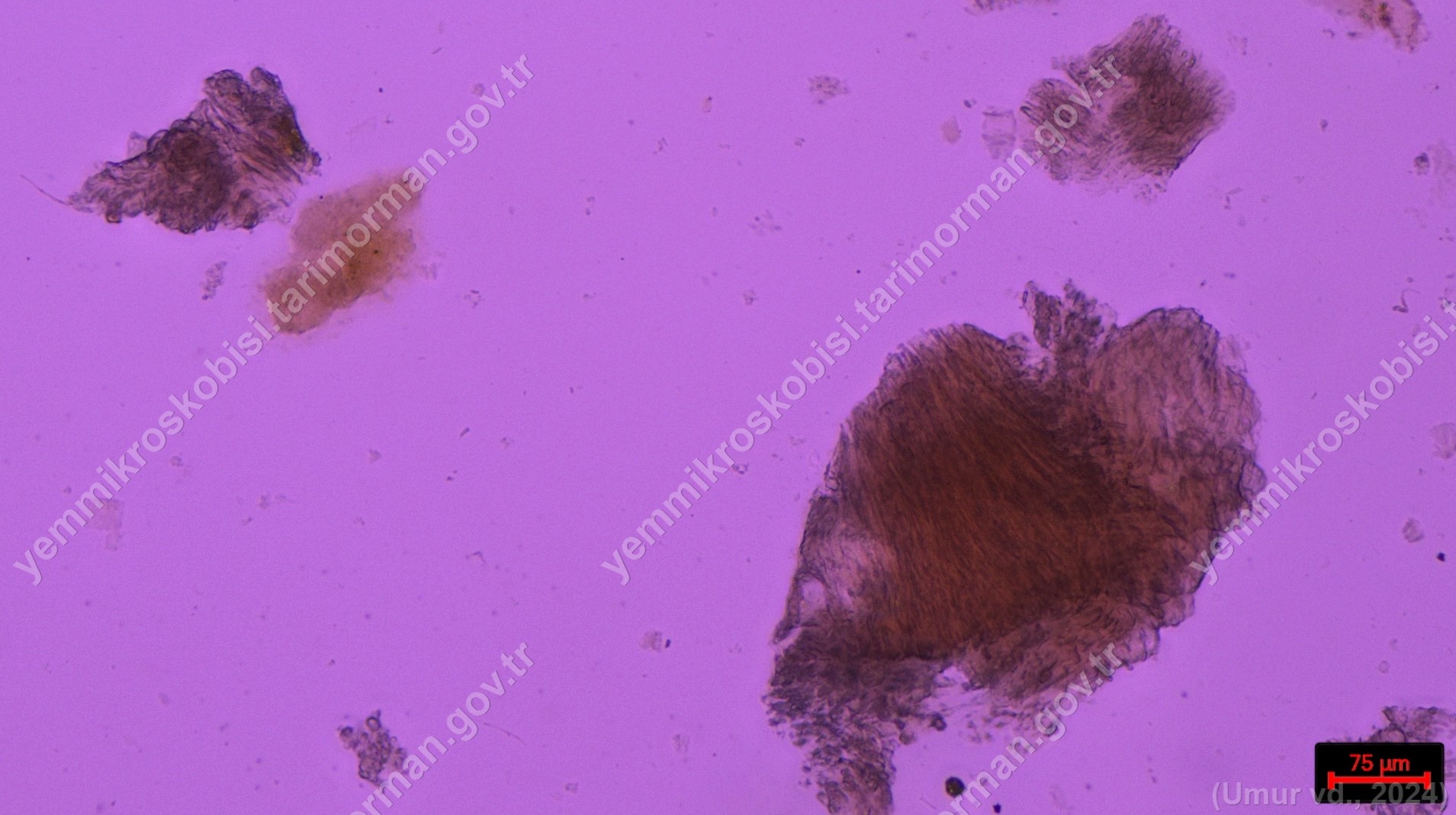 Tüy Unu | Gallus gallus domesticus | Kas Doku | Flotat <200µ | Işık | 100x | Fehling | ||