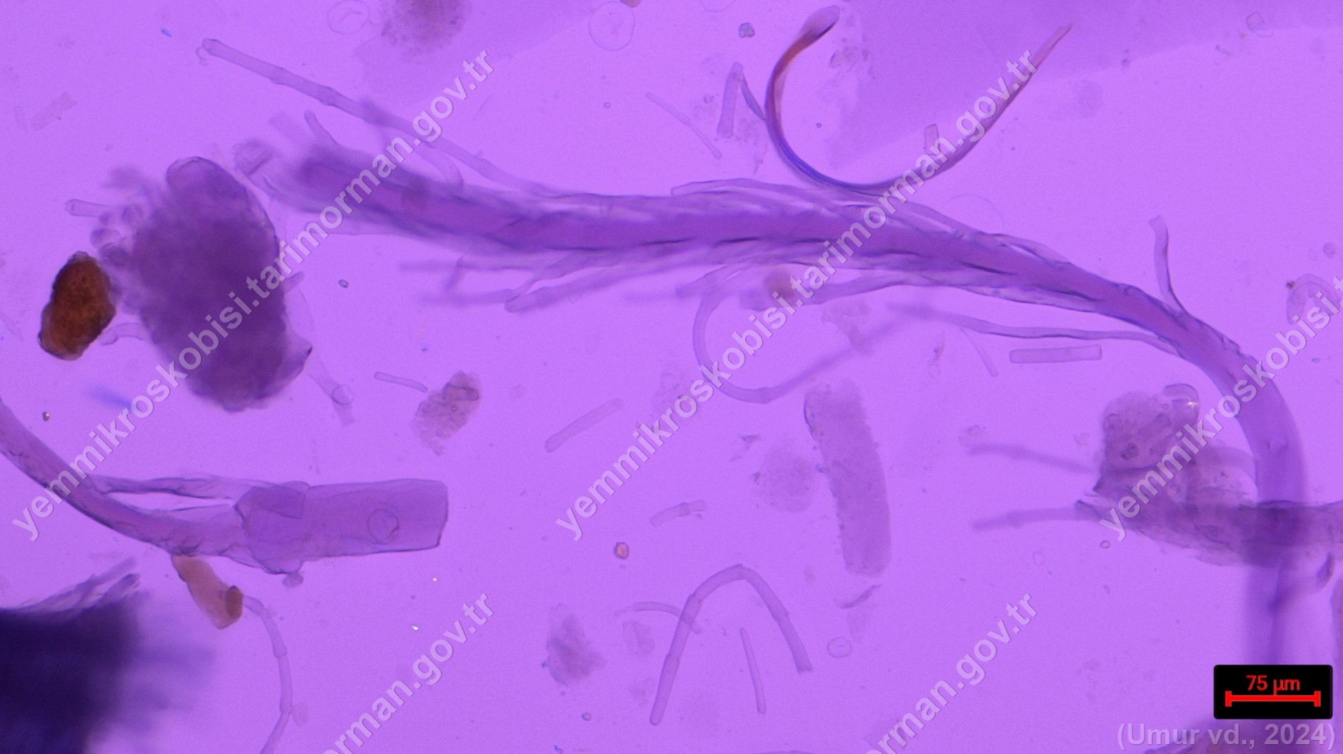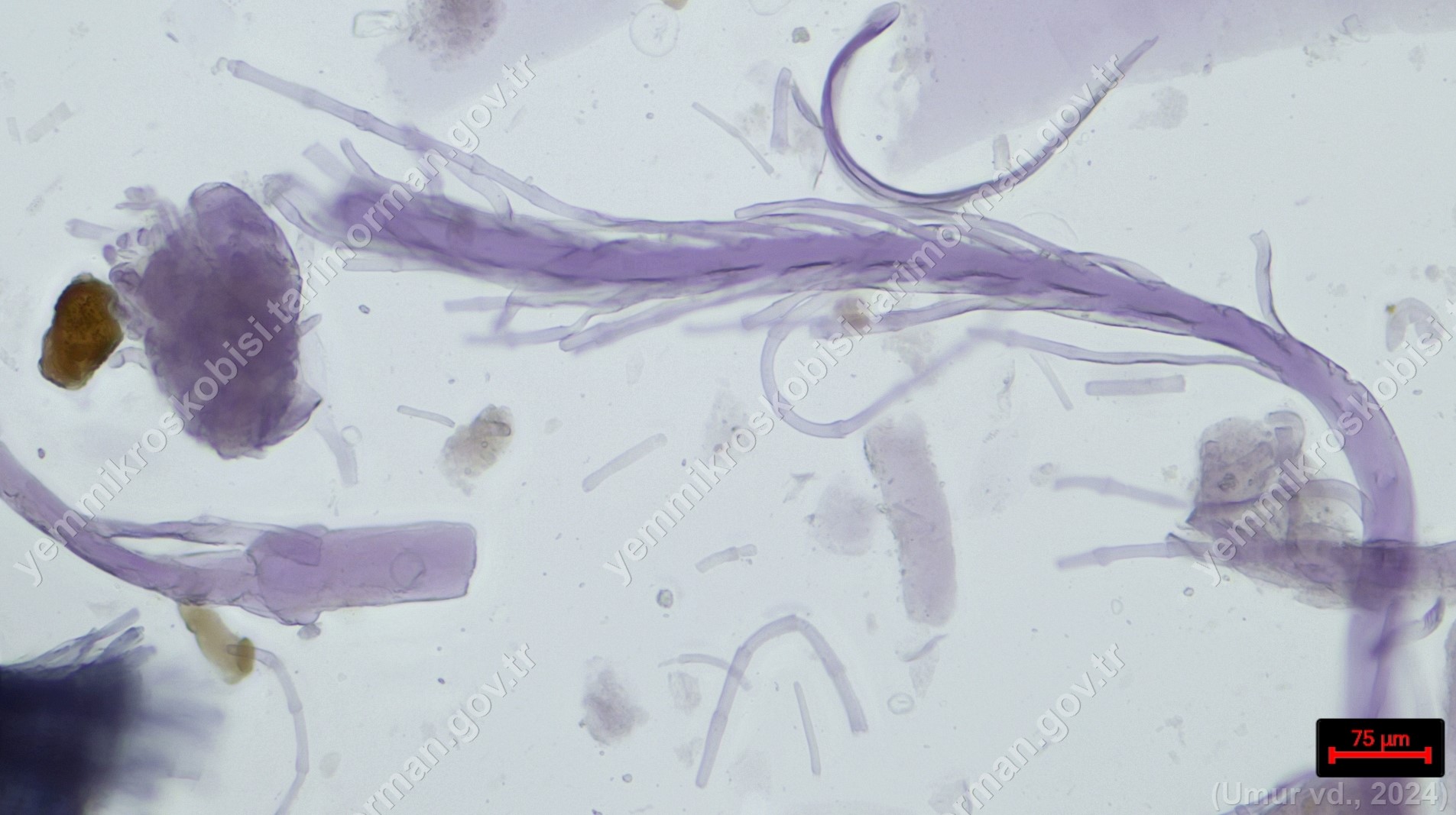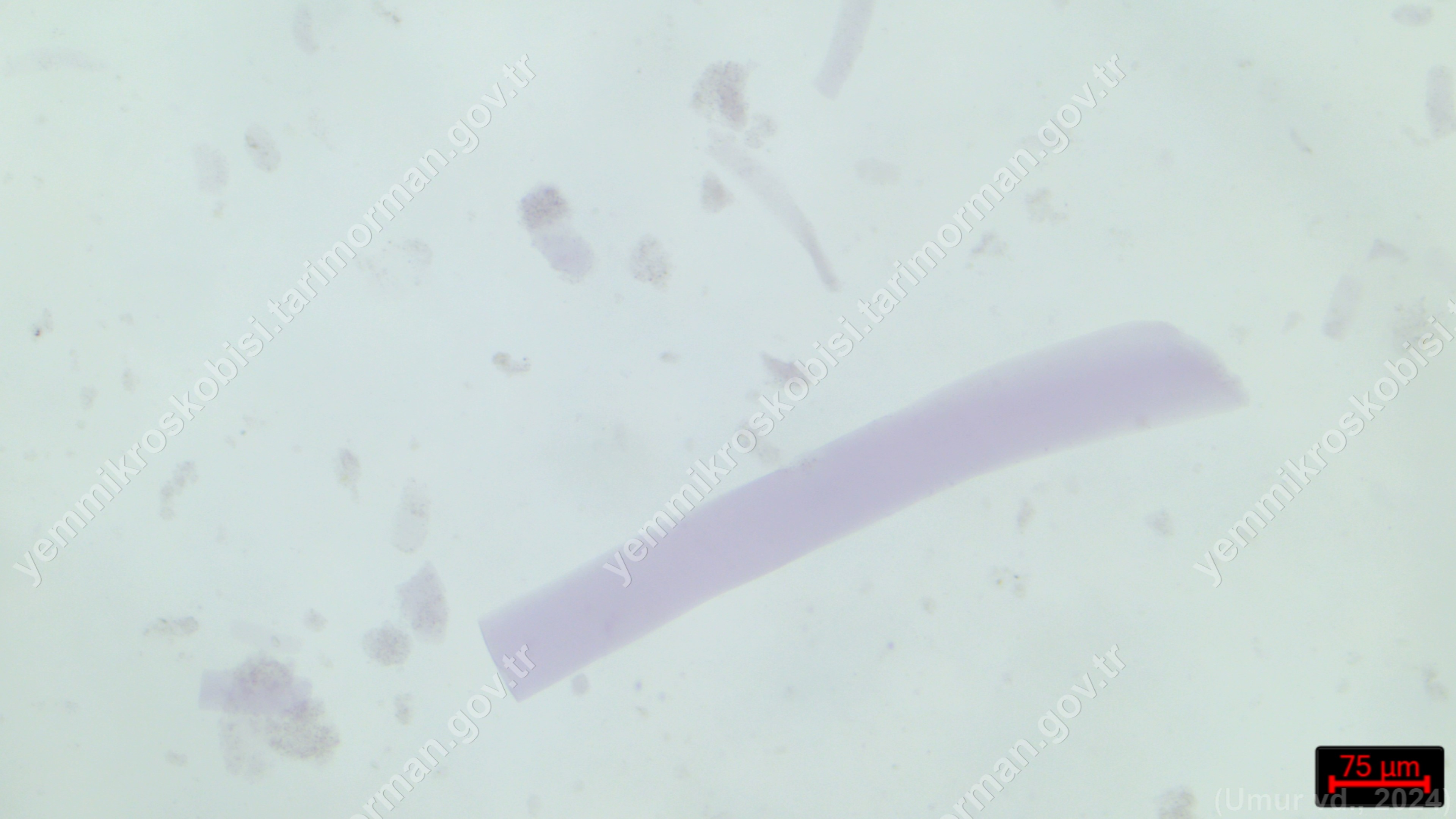Tüy Unu | Gallus gallus domesticus | Tüy | Polarize ışık | Flotat <200µ | Işık | 100x | Fehling | |