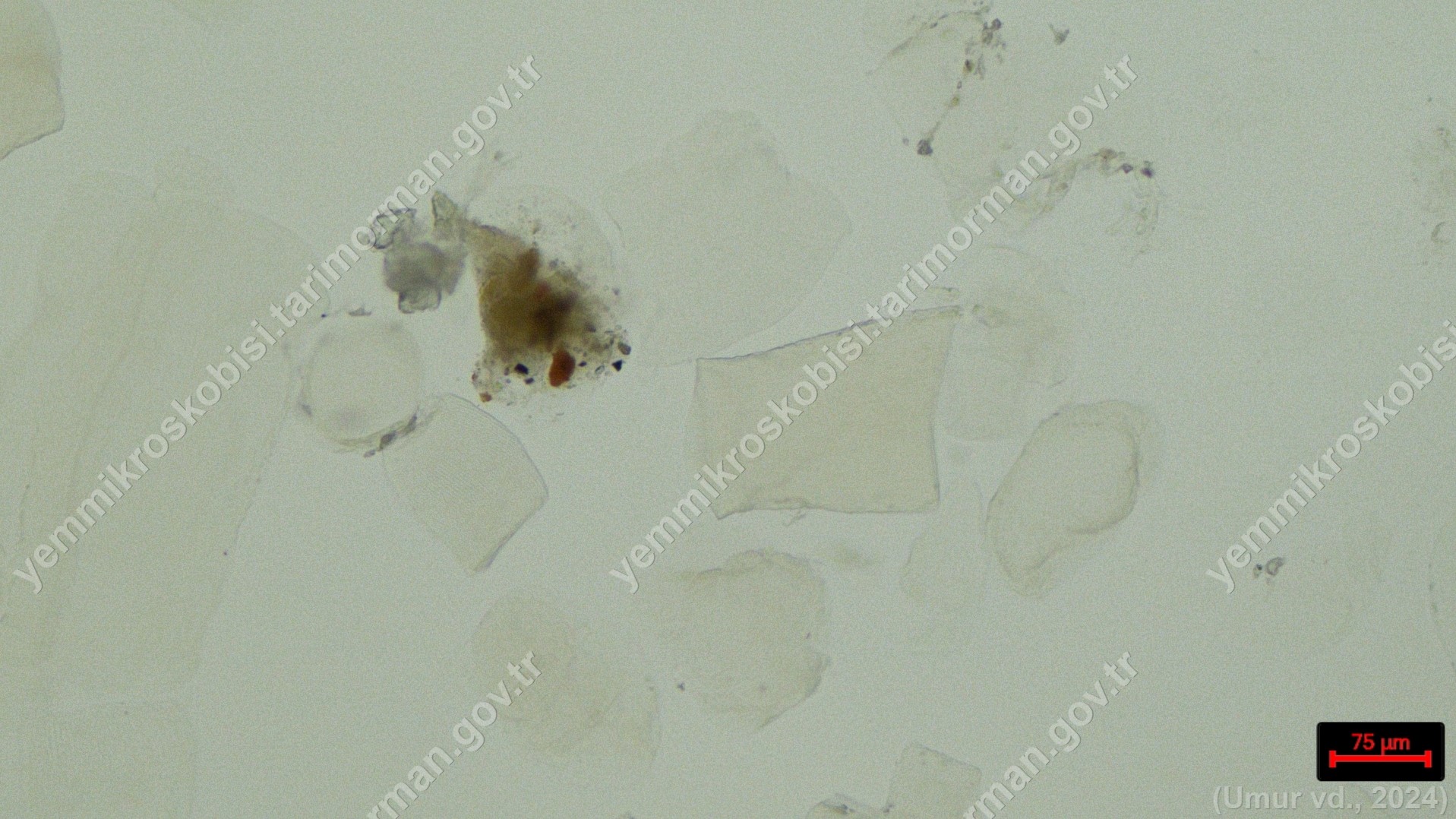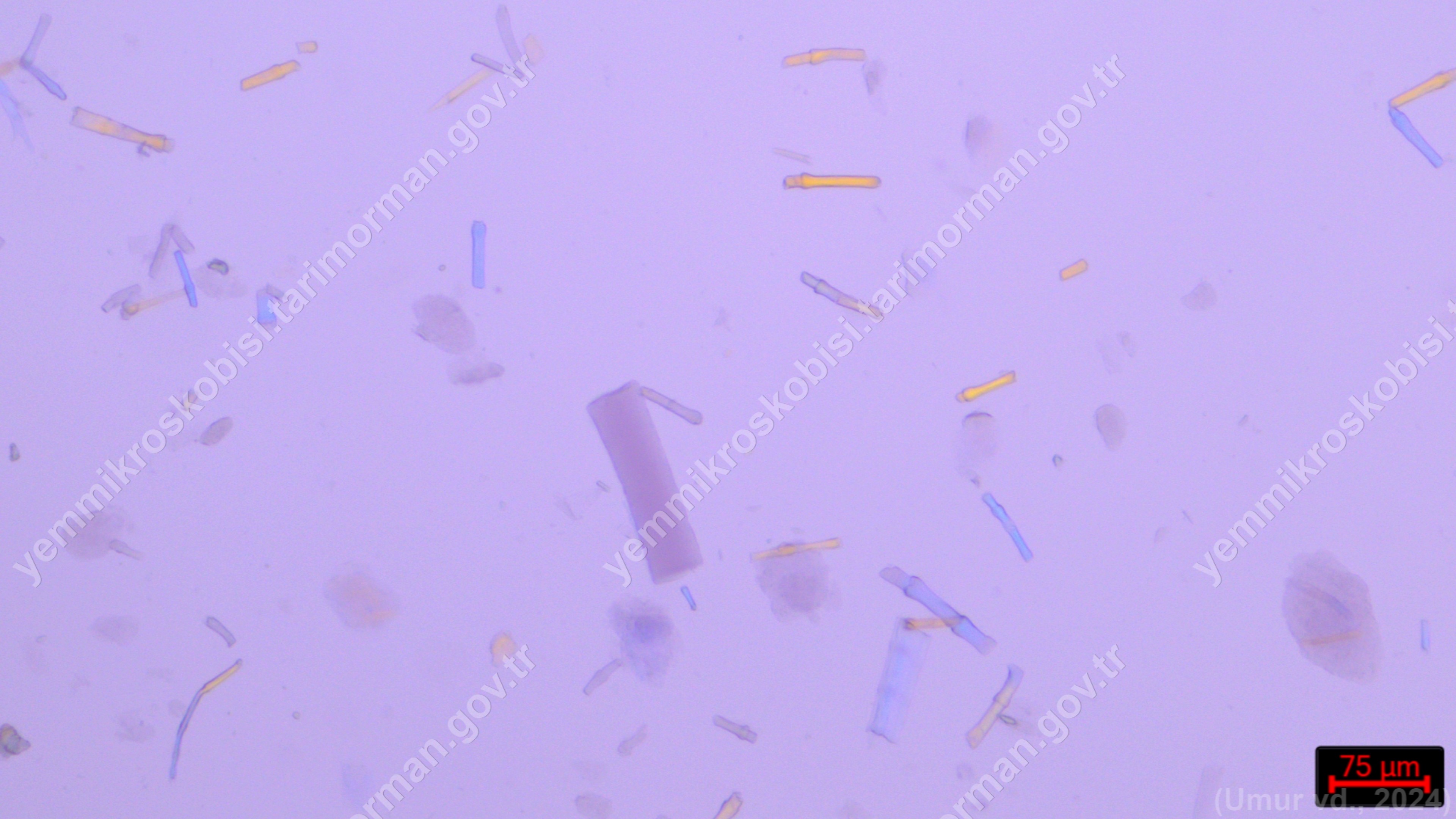 Sülünez Kurdu Unu | Polarize ışık | Flotat <200µ | Işık | 100x | Lye | |||